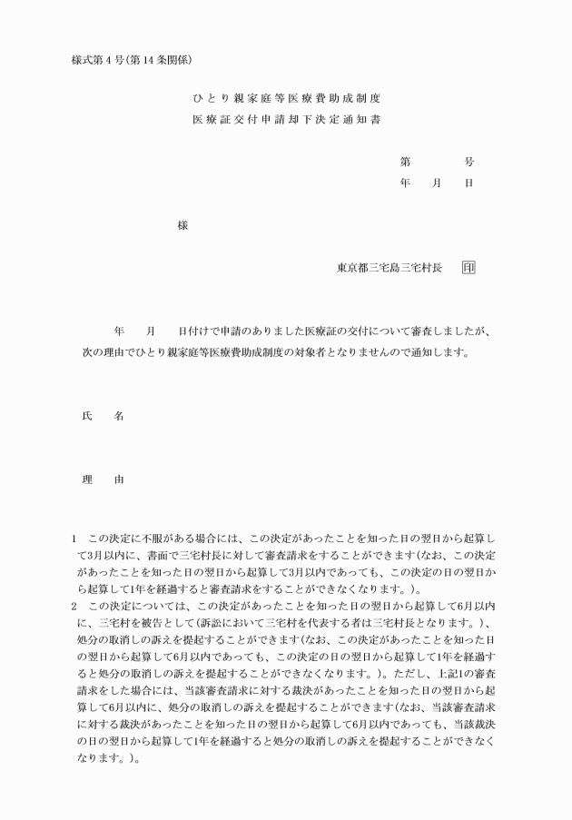 ○三宅村ひとり親家庭等の医療費の助成に関する条例施行規則