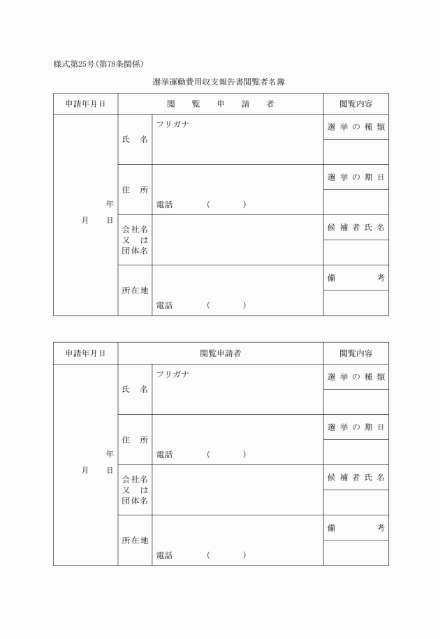 第78条 法第189条(選挙運動に関する収支及び支出の報告書の提出)第1項の規定によって委員会に提出された報告書を閲覧しようとする者は、委員会に閲覧申請書を提出しなければならない。