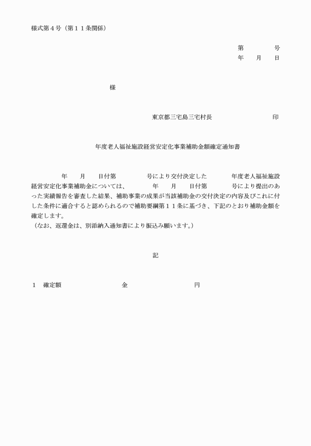 第6条 村長は、交付申請のあった事業について適当と認める場合は、様式第2号により補助金の交付を決定するとともに、申請者あてに通知する。